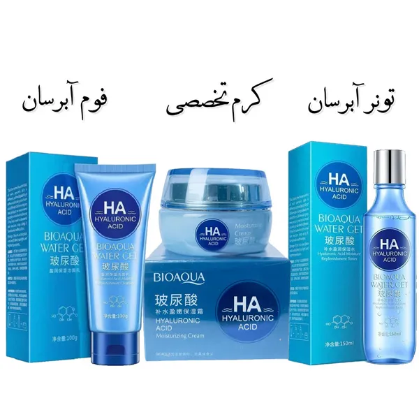 تونر هیالورونیک اسید + کرم هیالورونیک اسید + فوم هیالورونیک اسید